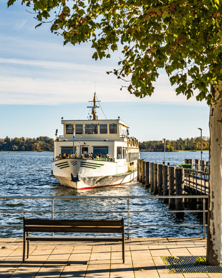 Eine Runde Schiff fahren geht immer: Mit dem Schaufelraddampfer fährt man hinaus auf den Chiemsee, der auch bayerisches Meer genannt wird. Die zwei Inseln, Herrenchiemsee und Fraueninsel, lassen sich problemlos zu Fuß und auch mit dem Kinderwagen erkunden.
