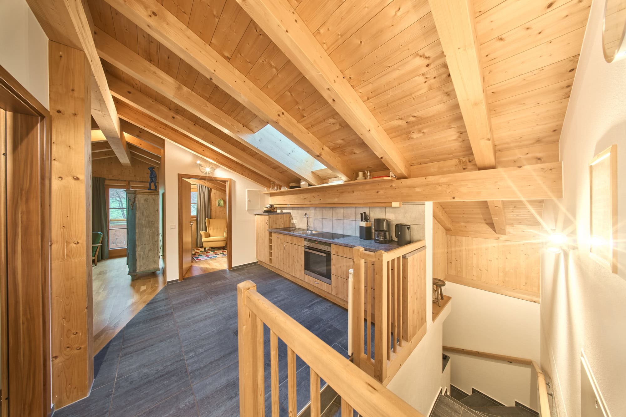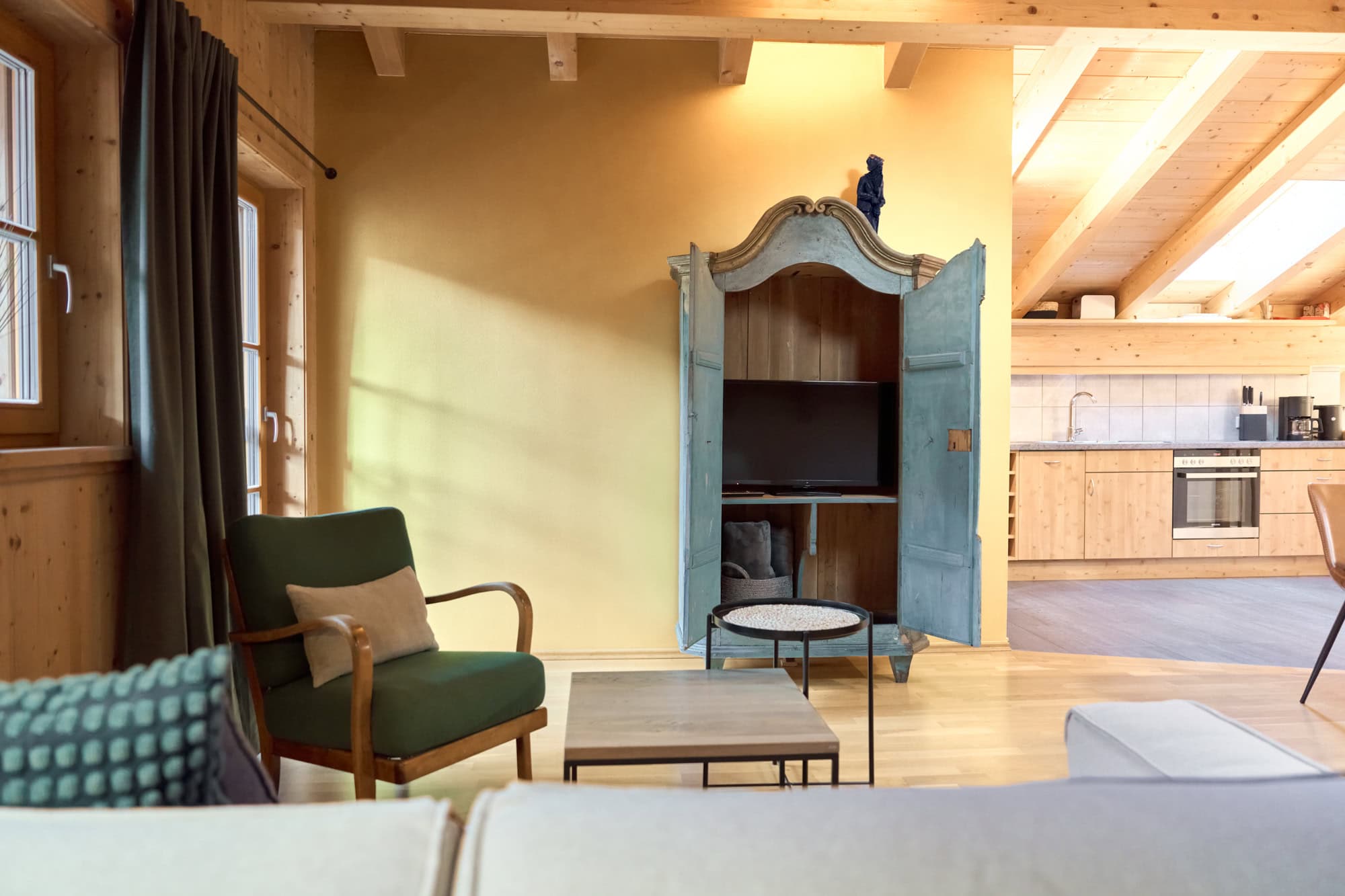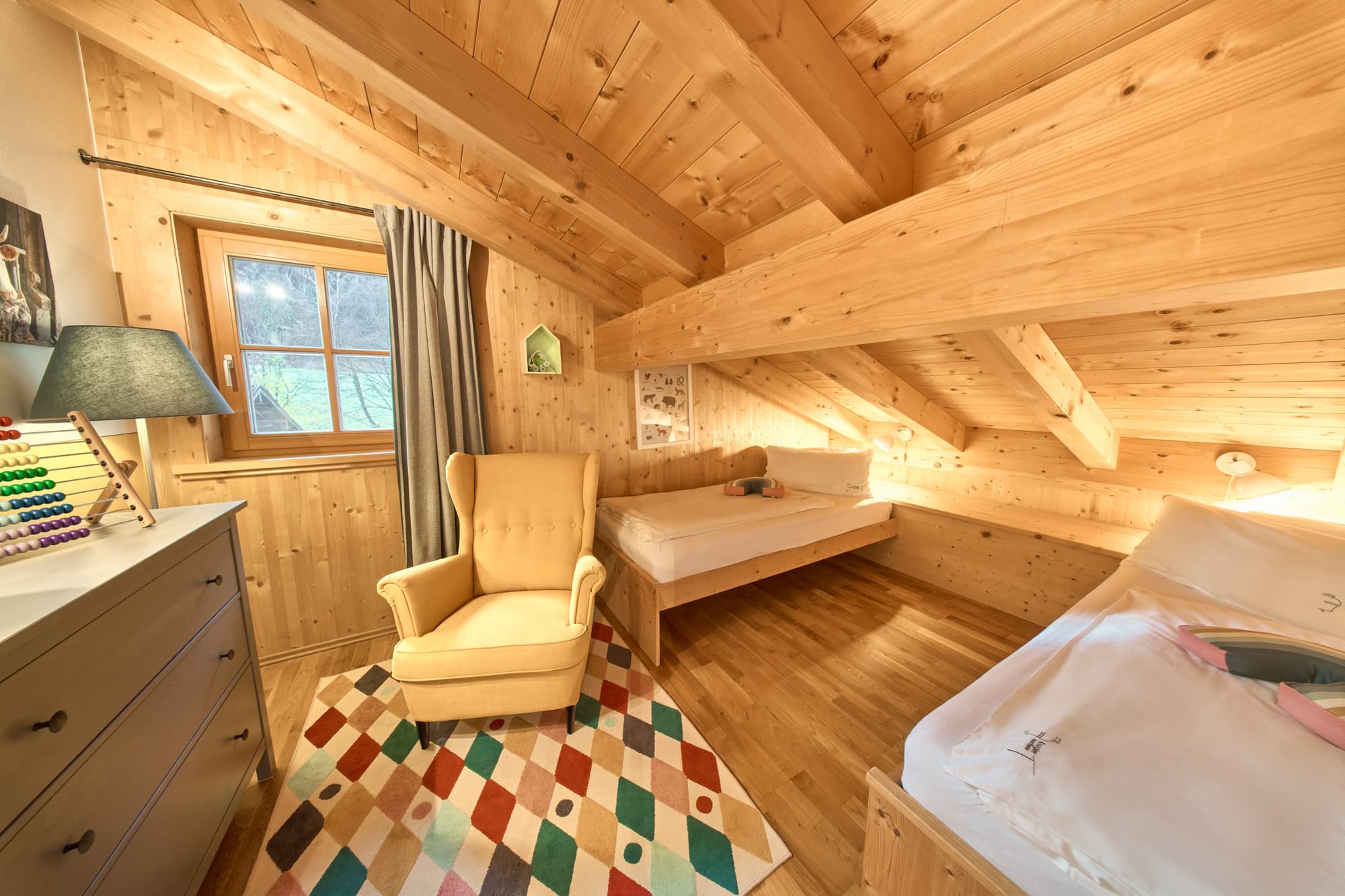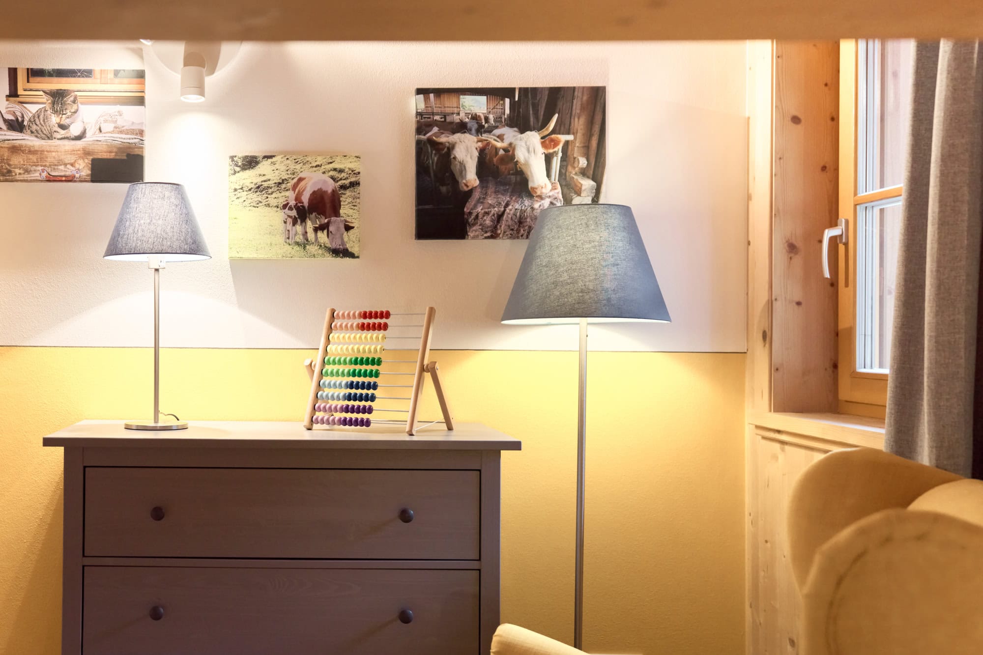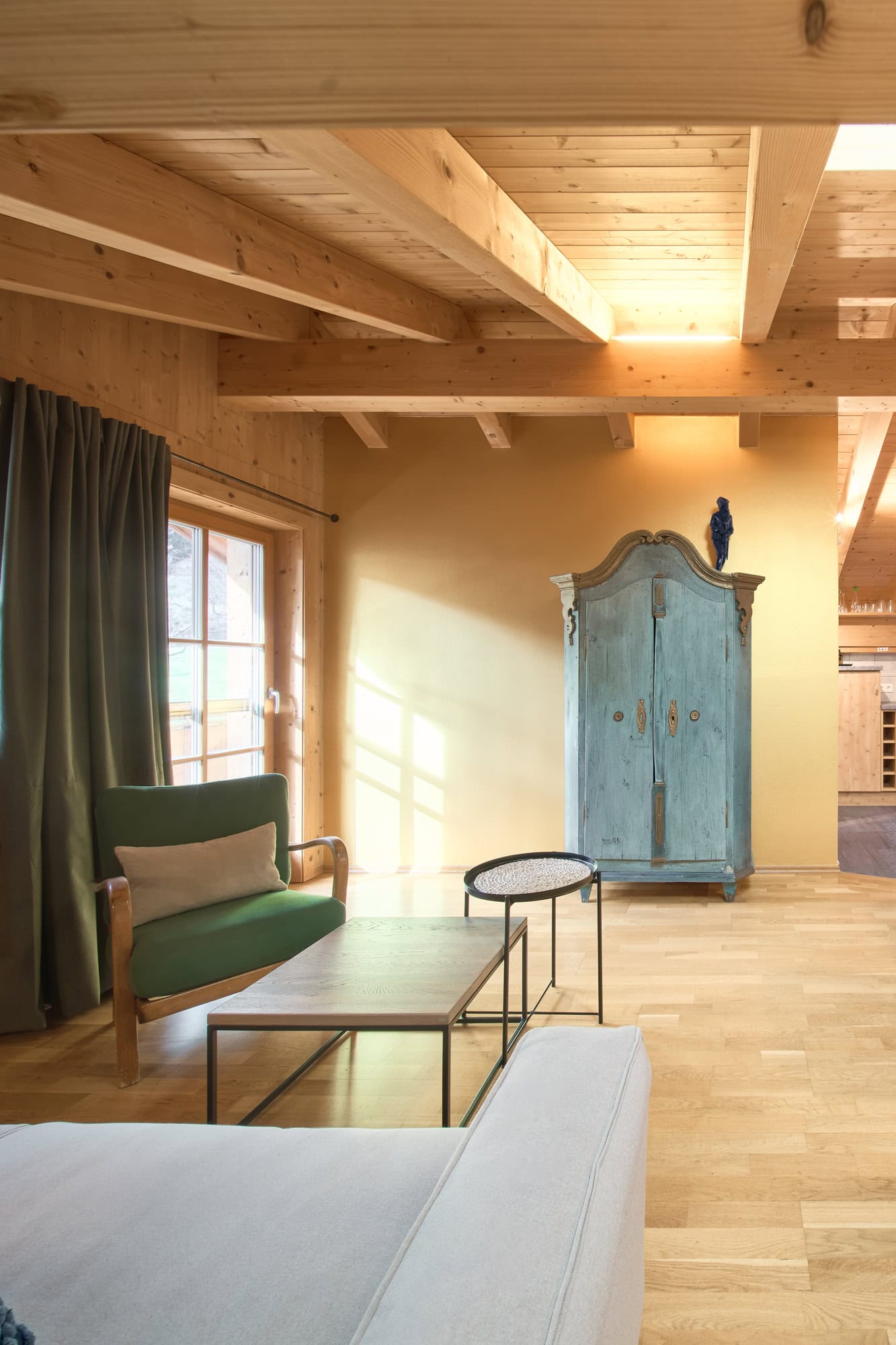 Mit je einem Eltern- und einem Kinderschlafzimmer ist unsere helle Ferienwohnung Geigelstein perfekt für Familien geeignet. Hier ist es so geräumig, dass sich jeder wohlfühlen und entspannen kann – alle gemeinsam oder jeder für sich.