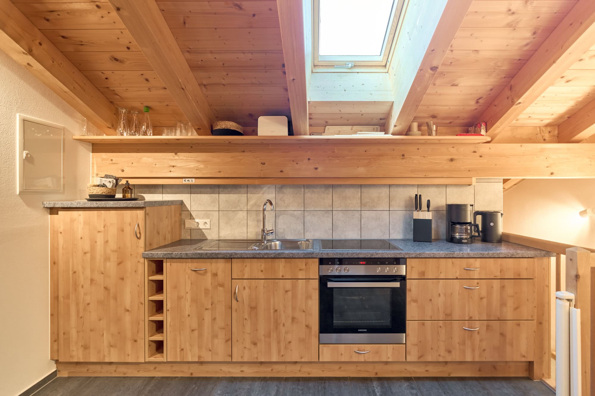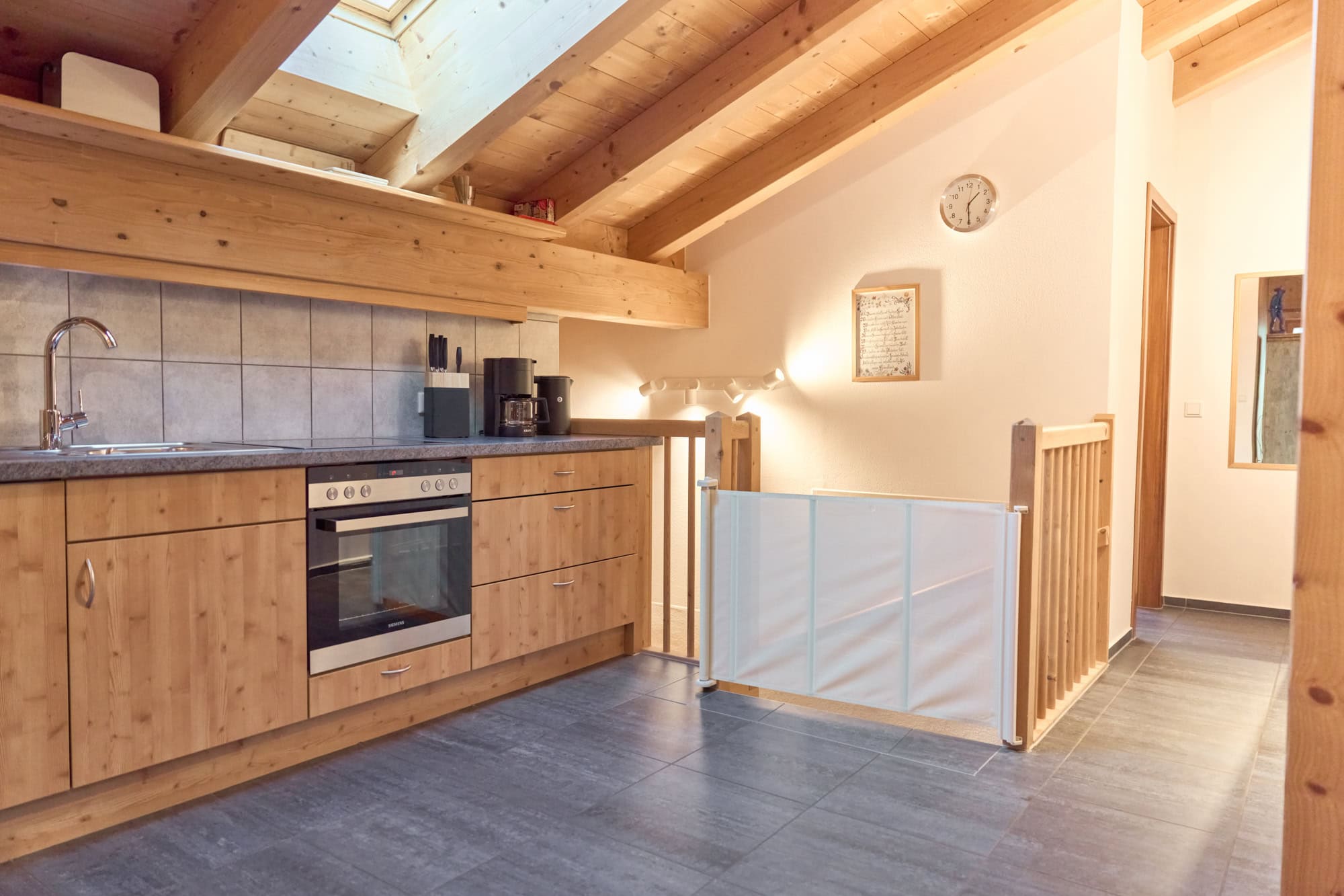 - Voll ausgestattete Küchenzeile mit Spülmaschine, Kaffeemaschine, Wasserkocher sowie Kindergeschirr